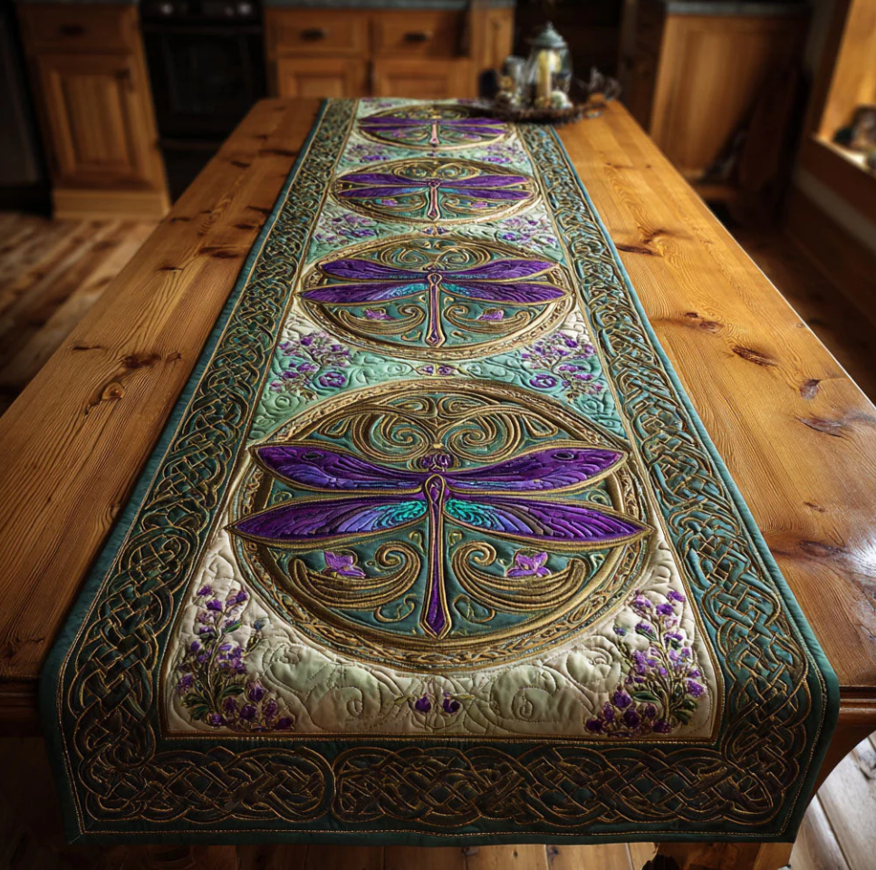 Artistic Quilted Table Runner with Peacock Gnome Wolf Hummingbird Themed 3D Embossed Pattern Soft Breathable Fabric Decor Mat for Dining Room & Kitchen