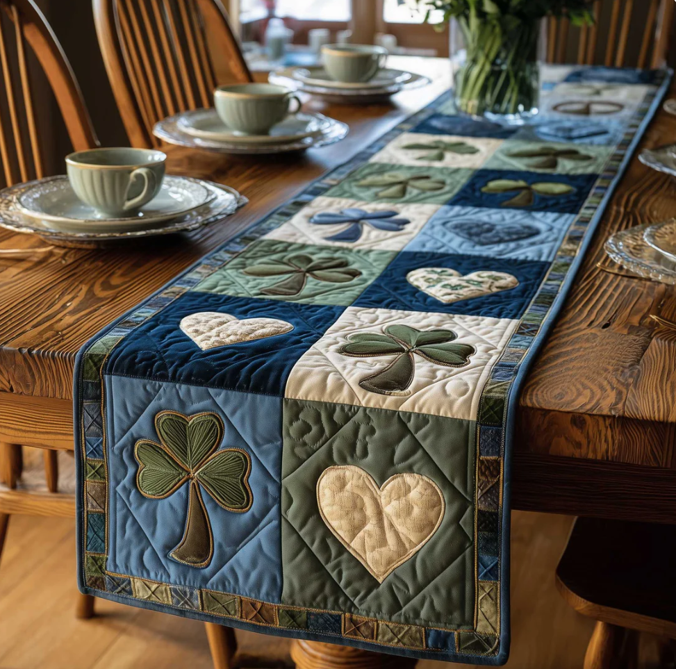 Exquisite Quilted Table Runner with Heart Shamrock Polar Animal Themed 3D Pattern Soft Durable Fabric Decorative Mat for Dining Table Decoration
