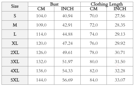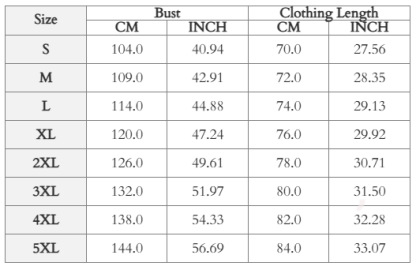 S/M/L/XL/XXL/XXXL/XXXXL/XXXXXL to fit different body types.