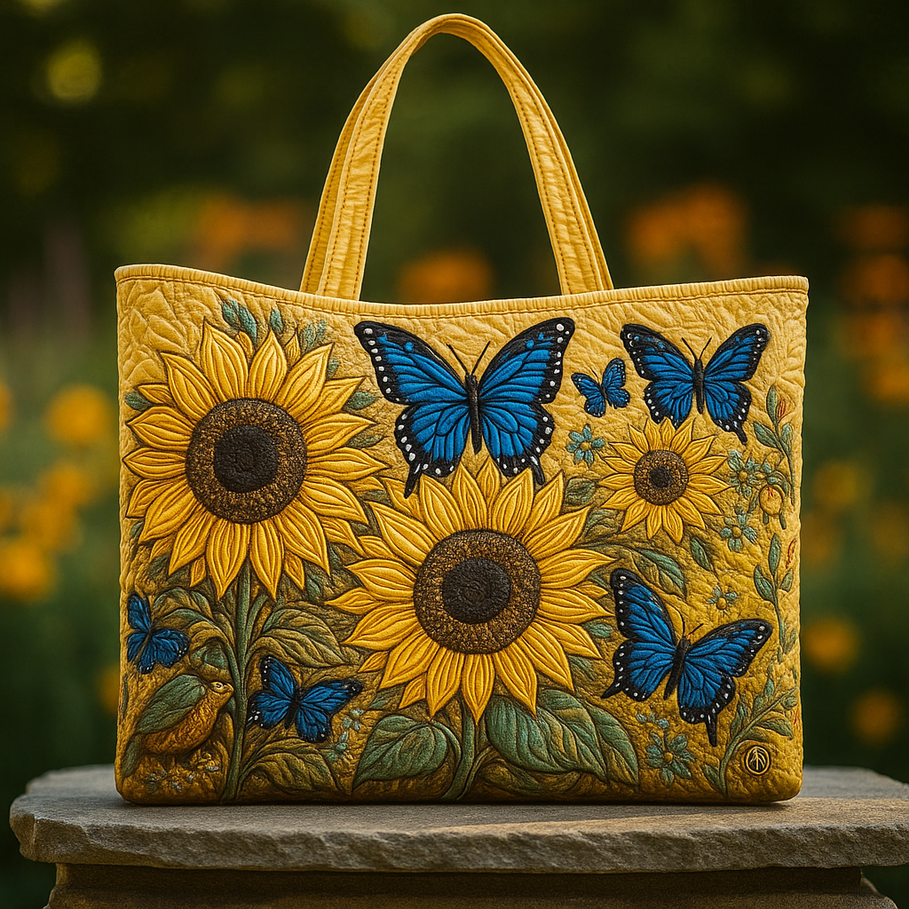 Sunlit Wings & Golden Blooms Quilted Tote ✨🌻🦋