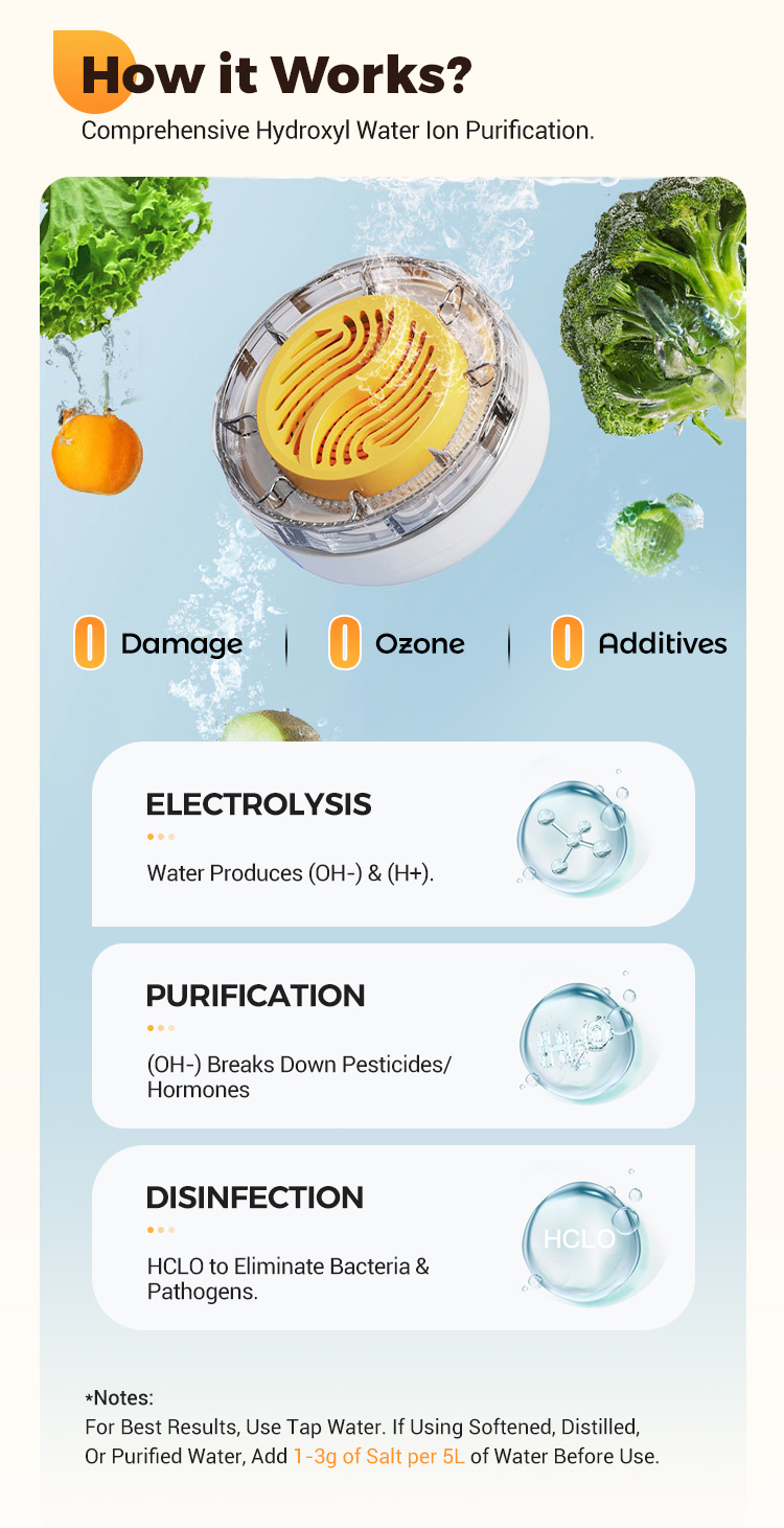 Pesticide Residue Removal Turbine Purification Fruit and Vegetable Washing Machine🍀Instantly transforms supermarket vegetables into organic-quality food.🌹Effectively degrades 99.9% of harmful pesticides and bacteria.